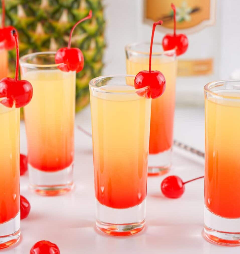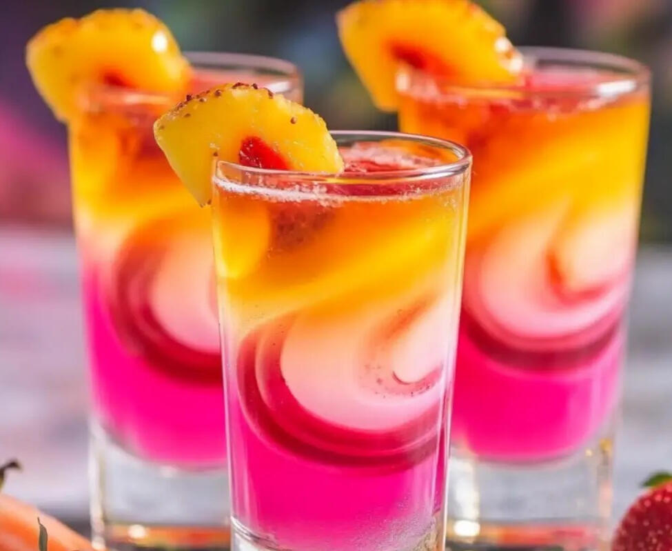 Golden pineapple, velvety vanilla, and a splash of magic swirl together in this decadent dessert shooter, topped with a ruby cherry perched like a crown. One sip and you might swear you heard fairy giggles in the treetops.